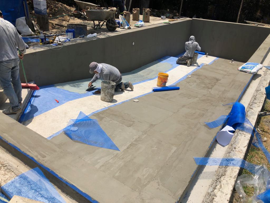 El siguiente proceso de construcción de su piscina es la aplicación de hormigón proyectado o gunita. Gunite es una mezcla de arena, roca y cemento que se aplicará por un técnico capacitado en Hidronamic Ingenieros S.A.C. Nuestros técnicos dispararán hábilmente a la pistola en la rejilla de refuerzo de acero de su piscina. La cubierta de su piscina formada por este proceso es muy fuerte.